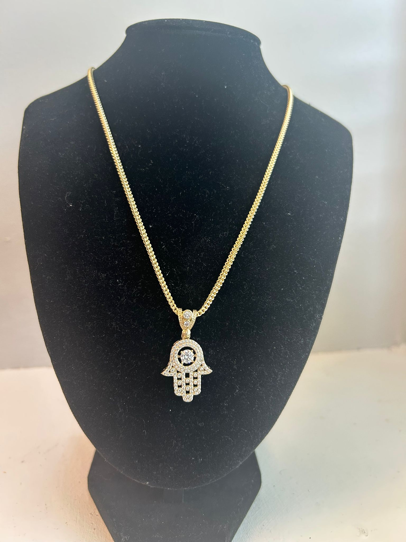 10k Franco Chain with Hamsa Hand Pendant – 22” or 24”