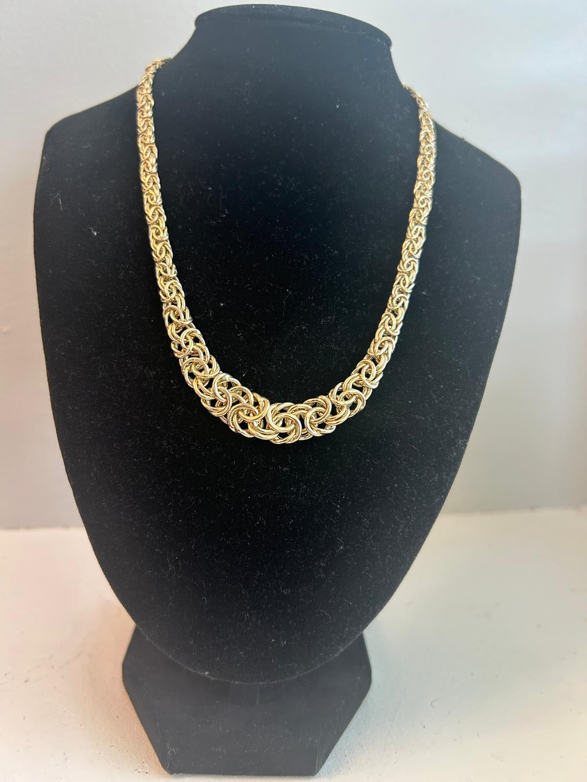 This exquisite Byzantine chain is crafted in genuine 10K yellow gold, offering a bold and luxurious design that speaks of timeless elegance. With its intricate interwoven pattern, this piece delivers a powerful statement of sophistication and strength — perfect for special occasions or everyday wear.