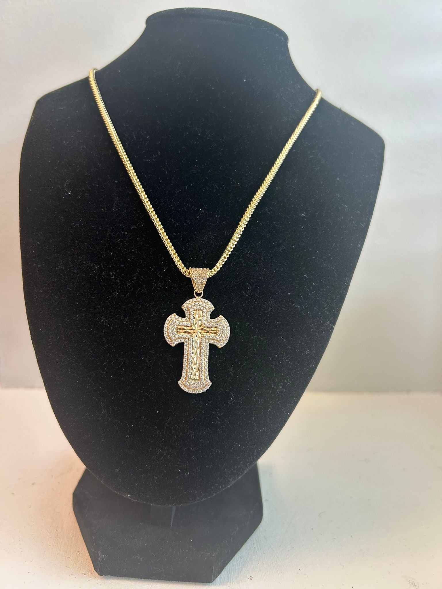 10k Gold Chain with Diamond-Cut Cross Pendant