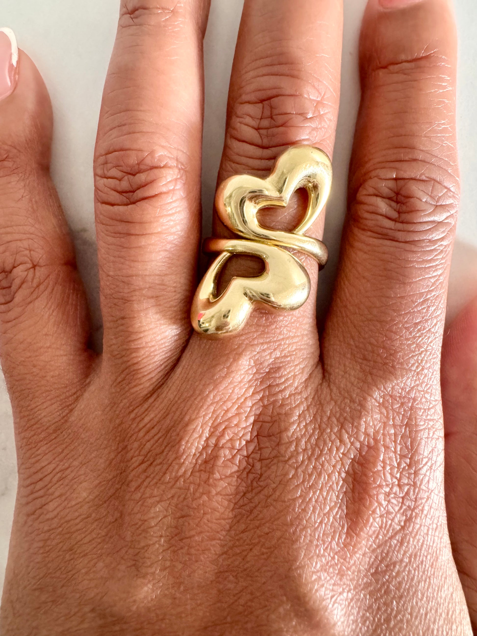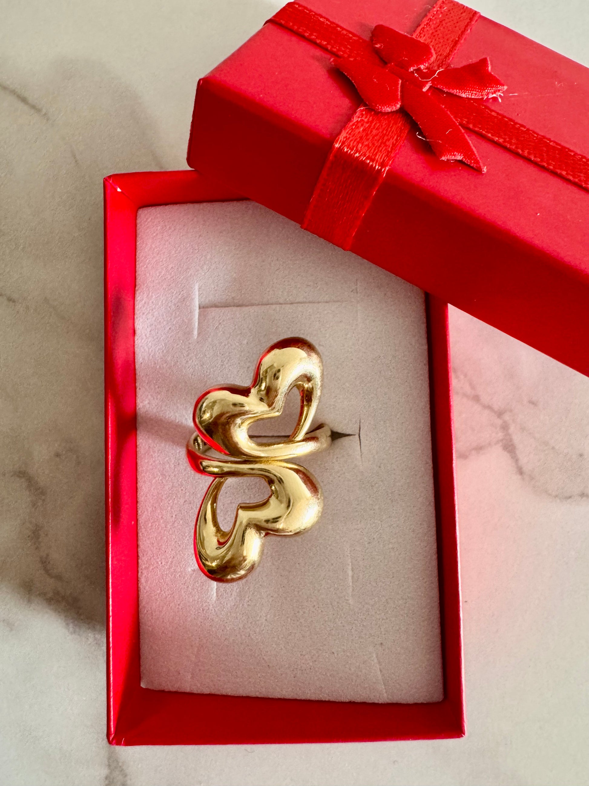 Celebrate love and elegance with this stunning double heart ring, beautifully crafted in 10K real gold. The bold and artistic heart design adds a modern romantic flair, making it a perfect statement piece for everyday wear or a meaningful gift.