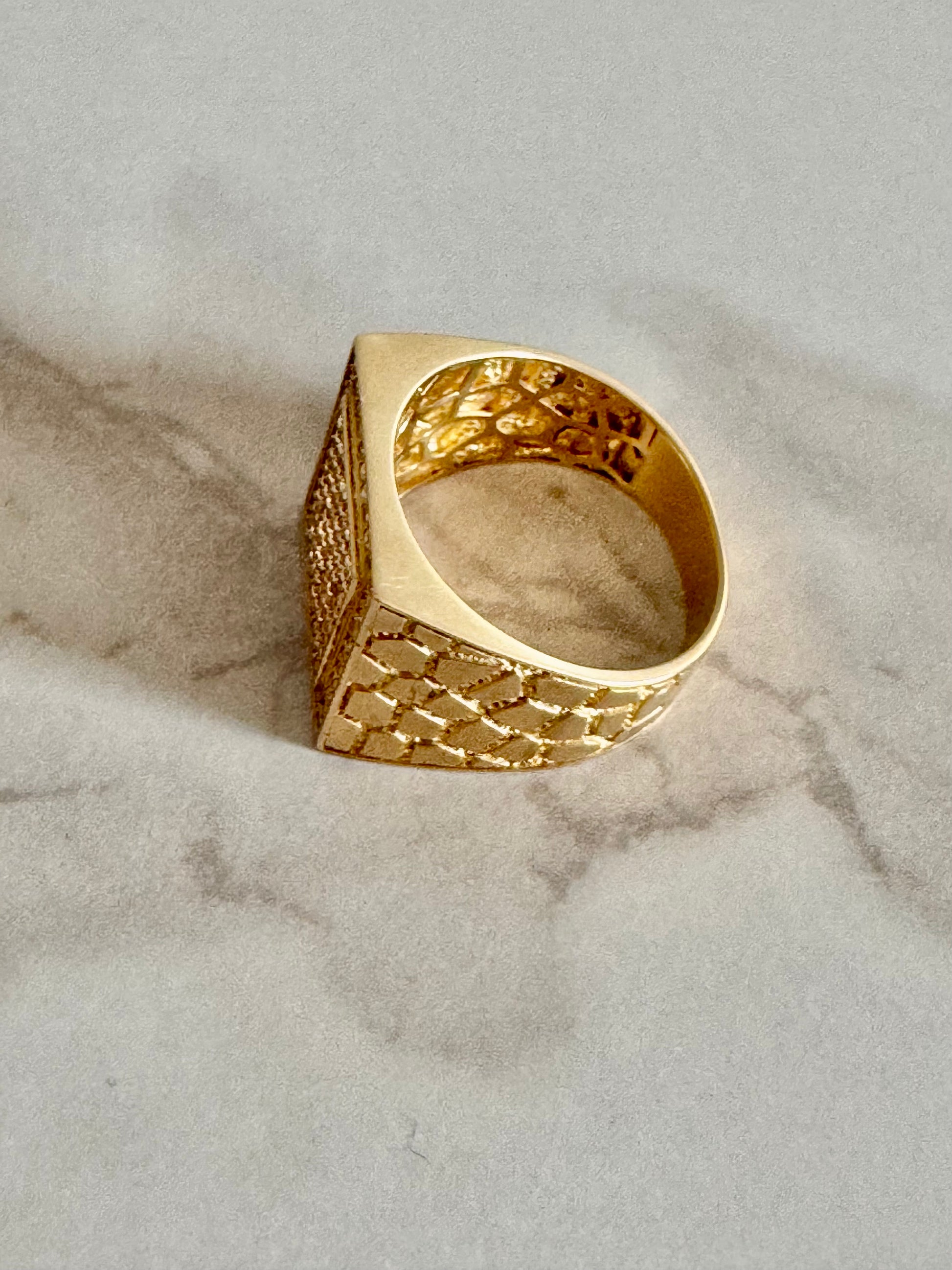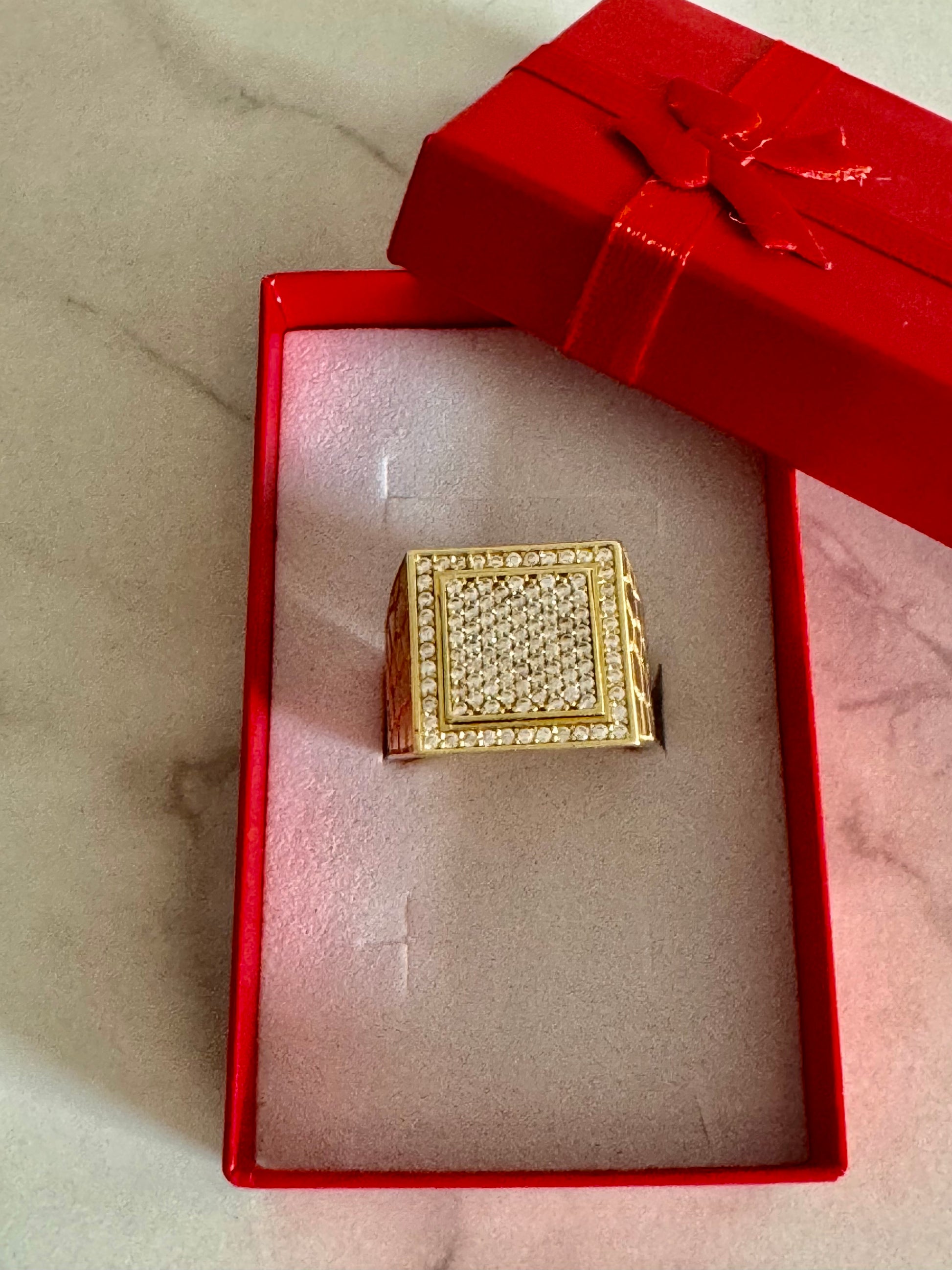 Make a statement with this bold and eye-catching men’s ring, featuring a square pavé design encrusted with shimmering stones. Crafted in 10k real gold, it’s the perfect balance of elegance and power for any modern gentleman.