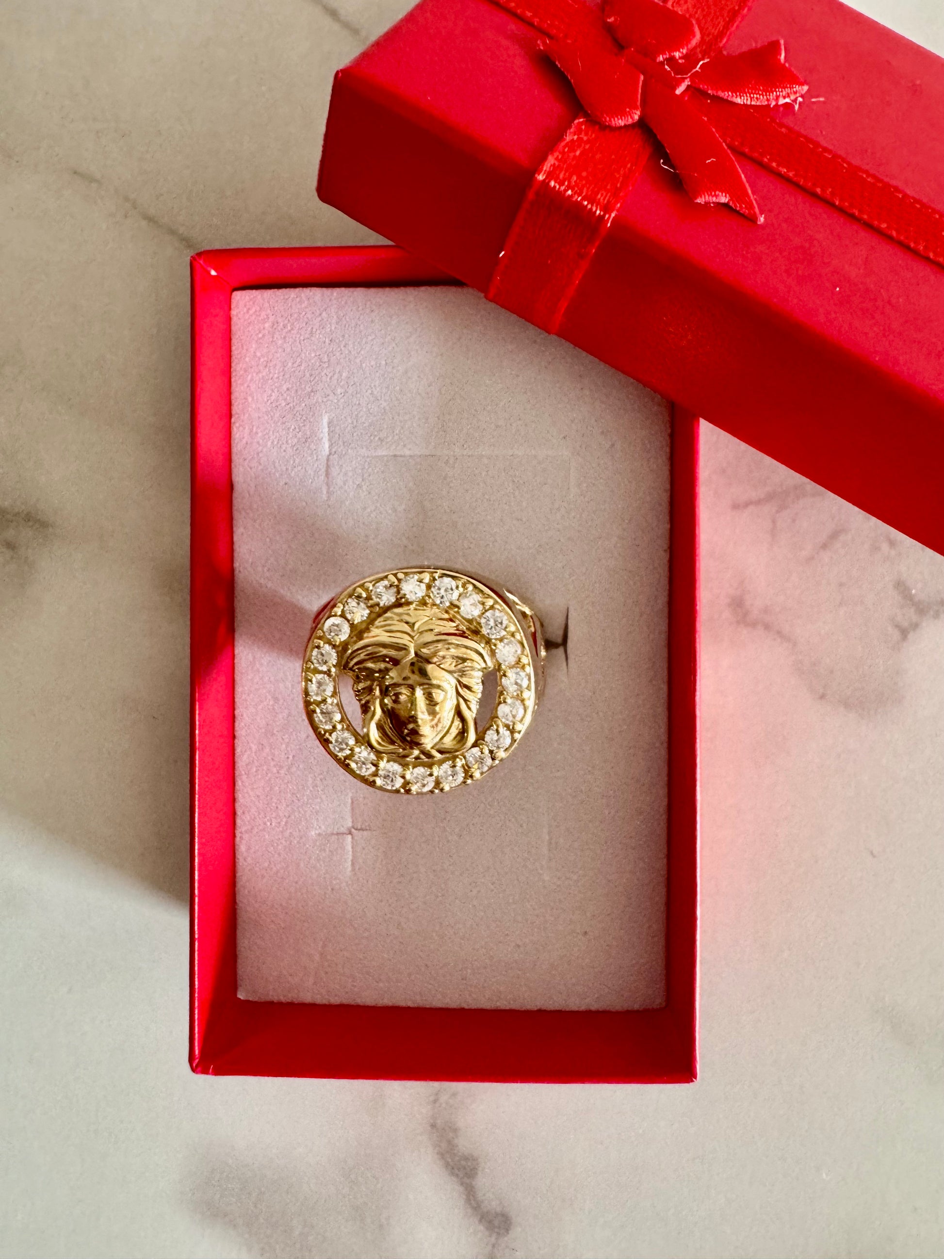 Unleash bold elegance with this striking Medusa ring for men, crafted in real 10k gold and surrounded by a circle of brilliant simulated diamonds. A powerful symbol of style and strength, perfect for those who appreciate standout pieces.